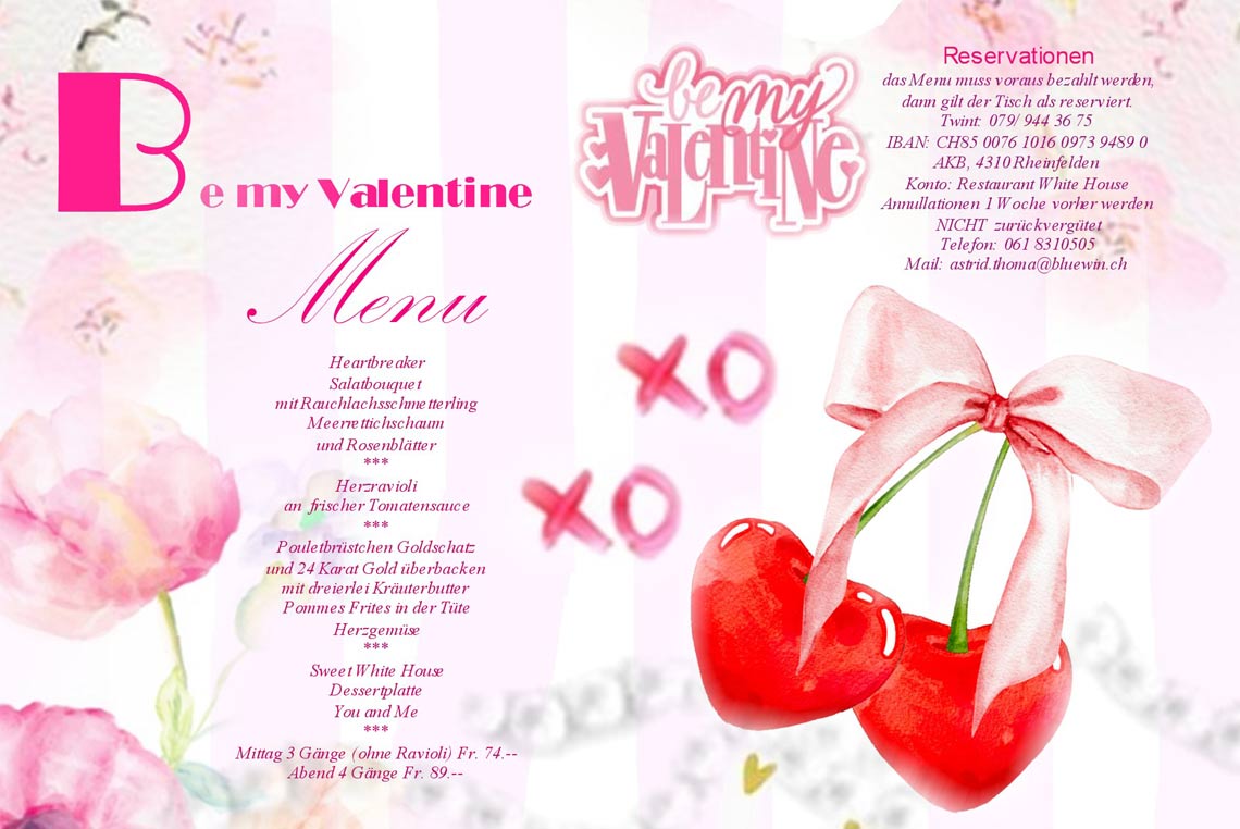 Geniesse mit Deinem Schatz den Valentinstag bei uns in romantischer Atmosphäre und lasst Euch so richtig verwöhnen. Unser verführerisches Menu wird Euch dahin schmelzen lassen...